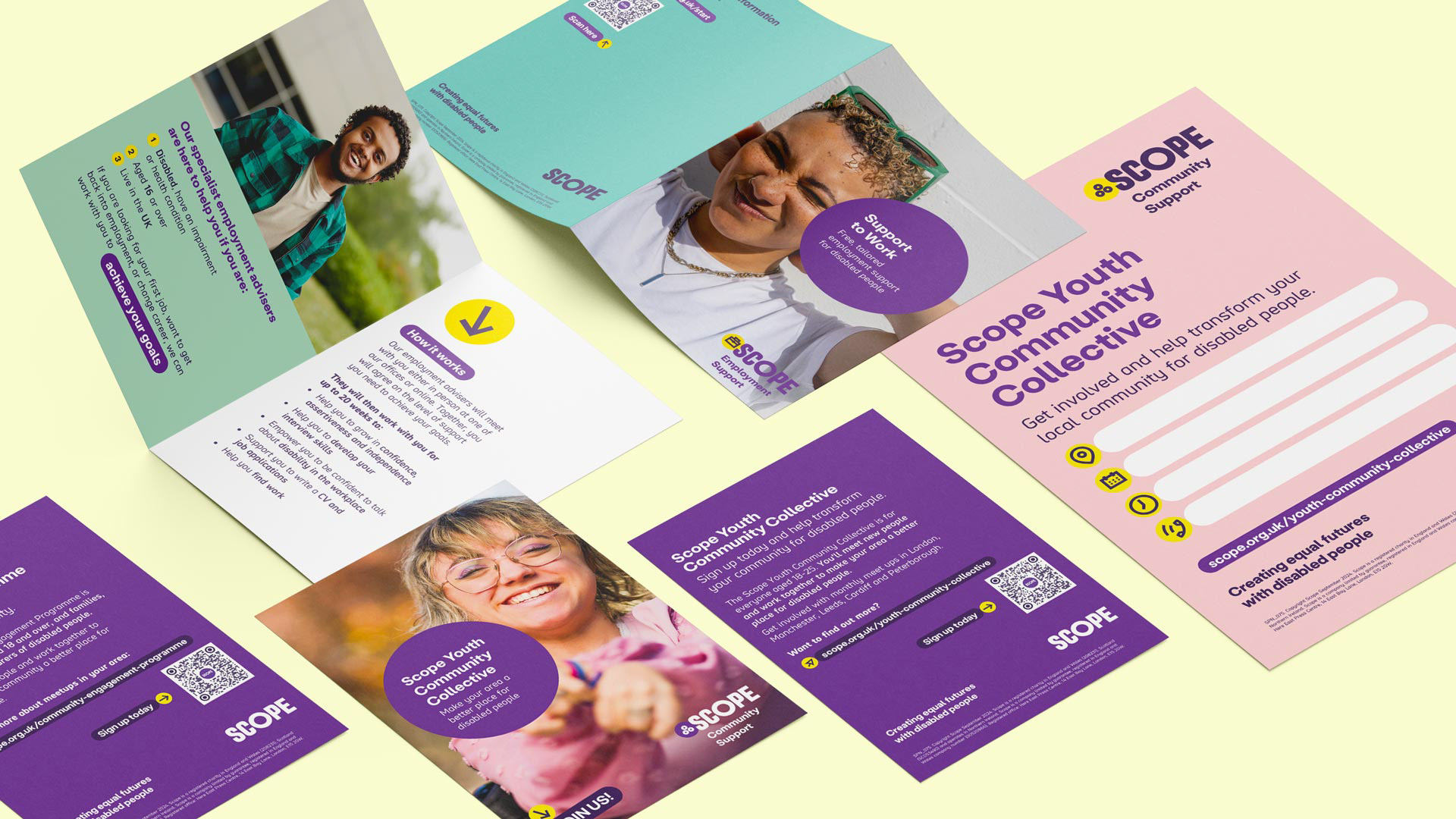 As a lead designer on Scope’s brand refresh, my role was to amplify the truths and lives of all disabled people through the brand, ensuring that we created a brand that was fit for purpose and could cover the wide variety of services and uses we needed. I worked alongside our partner agency to develop our guidelines and then worked across the full application of the brand refresh as a design lead within the in-house team.