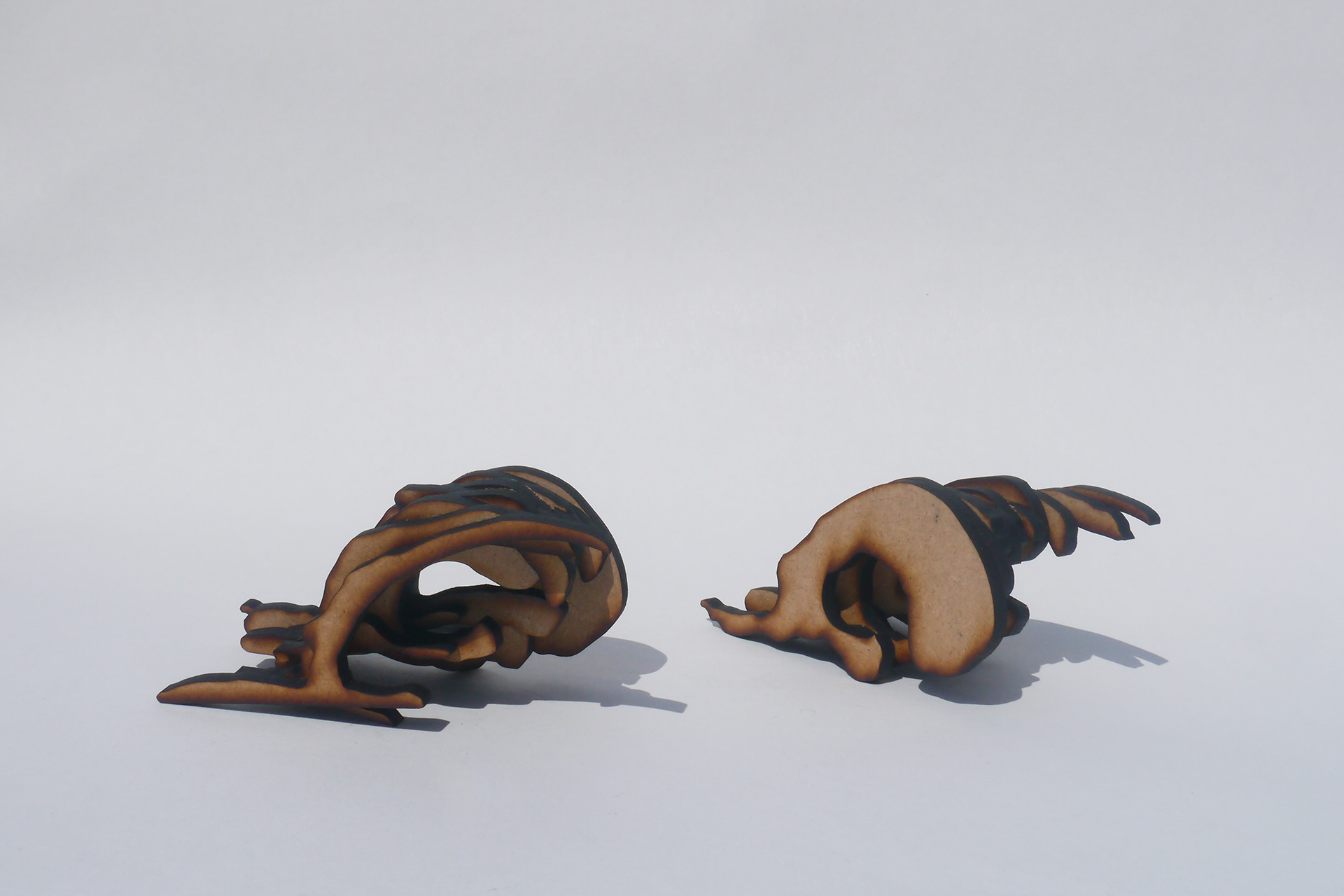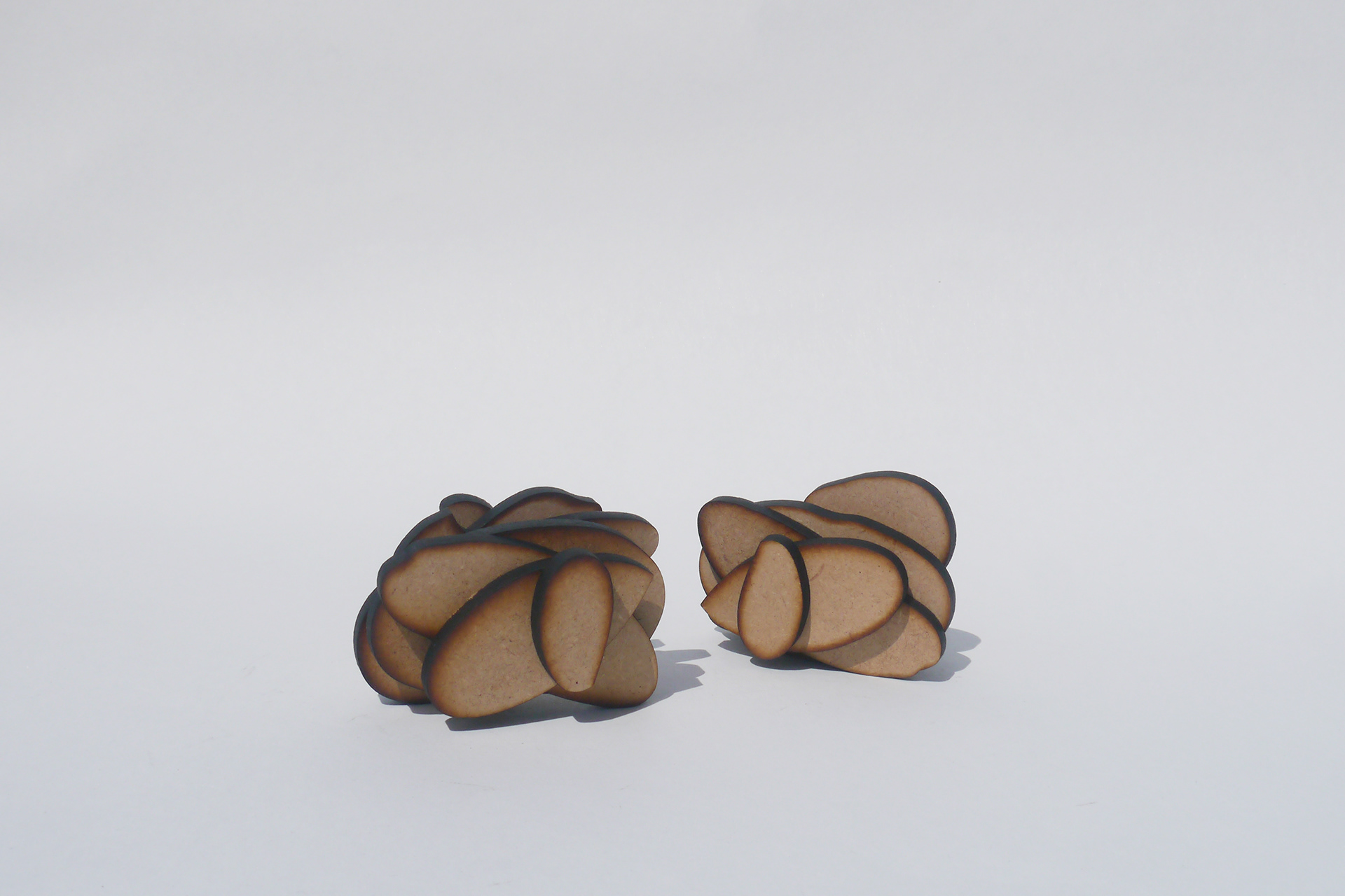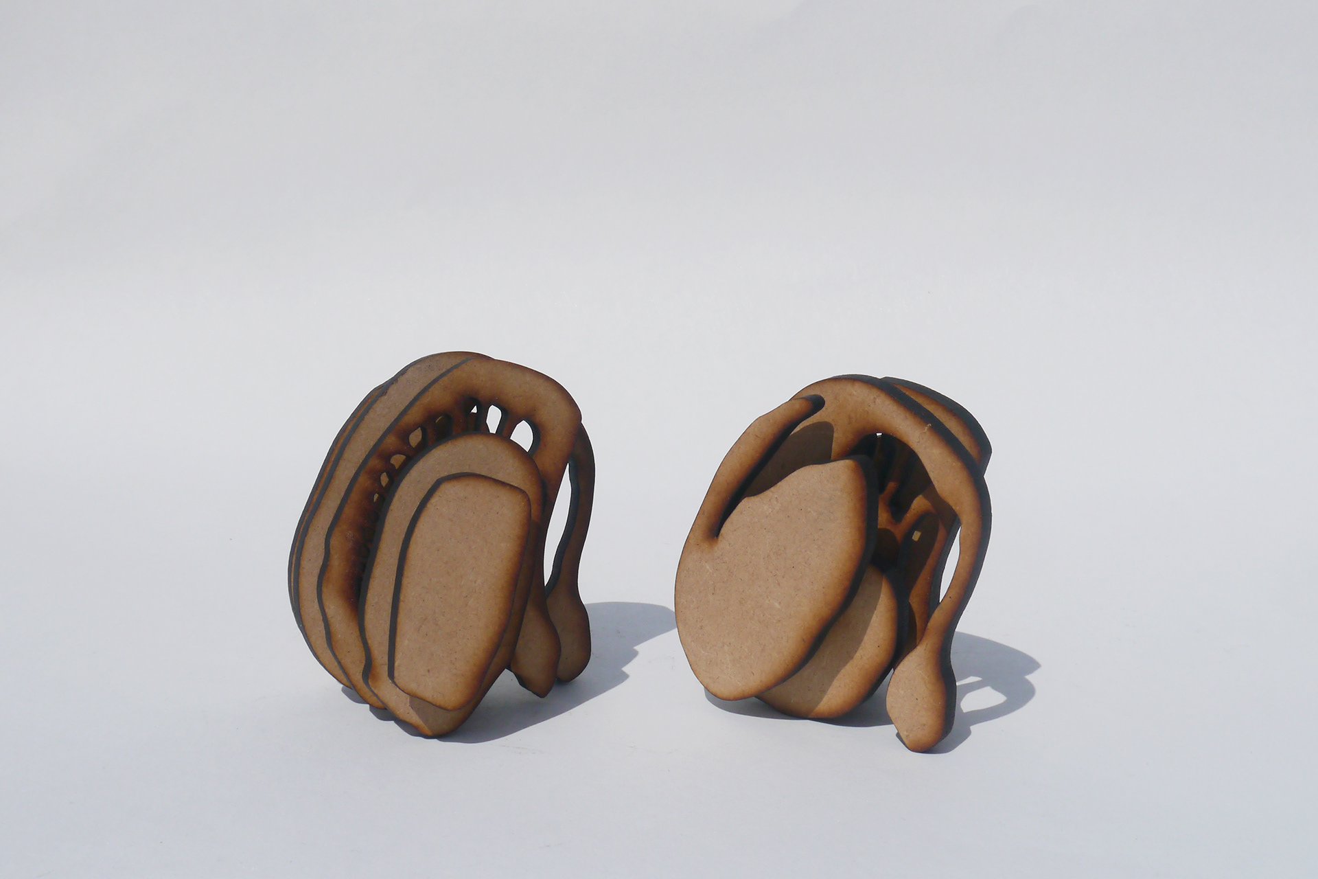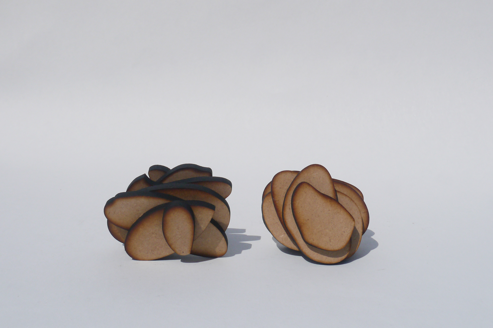 Hand crafted representations of anatomical brain structures represent the changes the brain goes through in the later stages of dementia. The pieces were co-produced with a person with dementia.