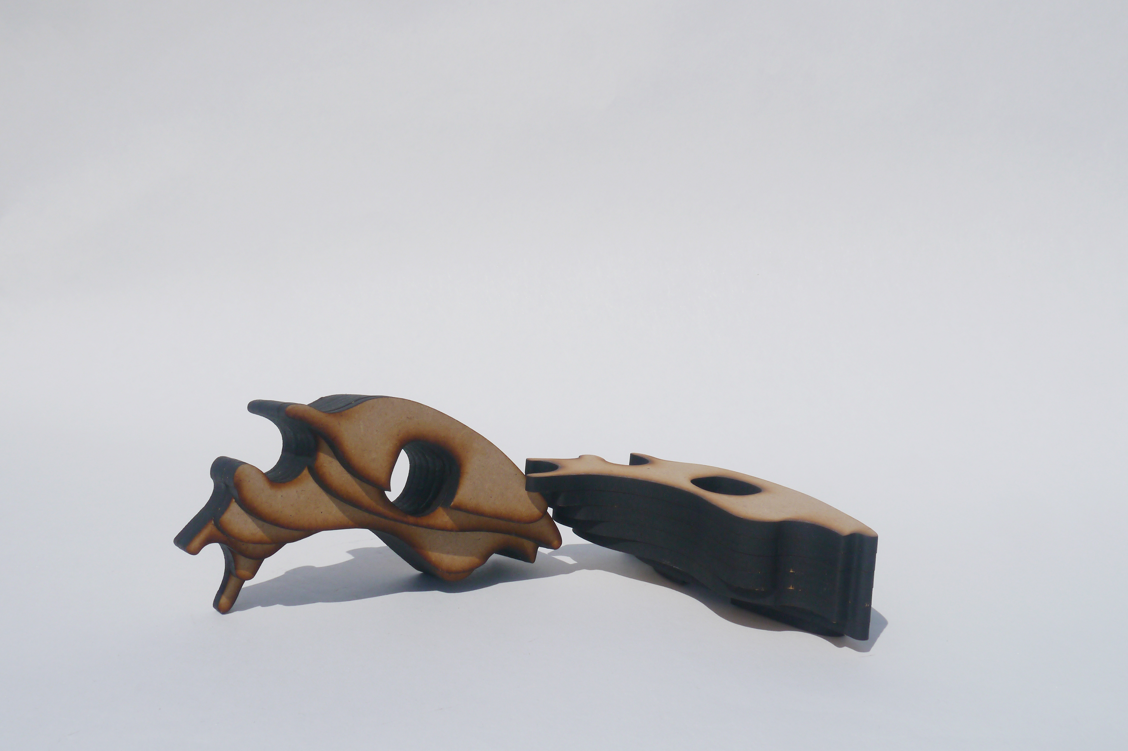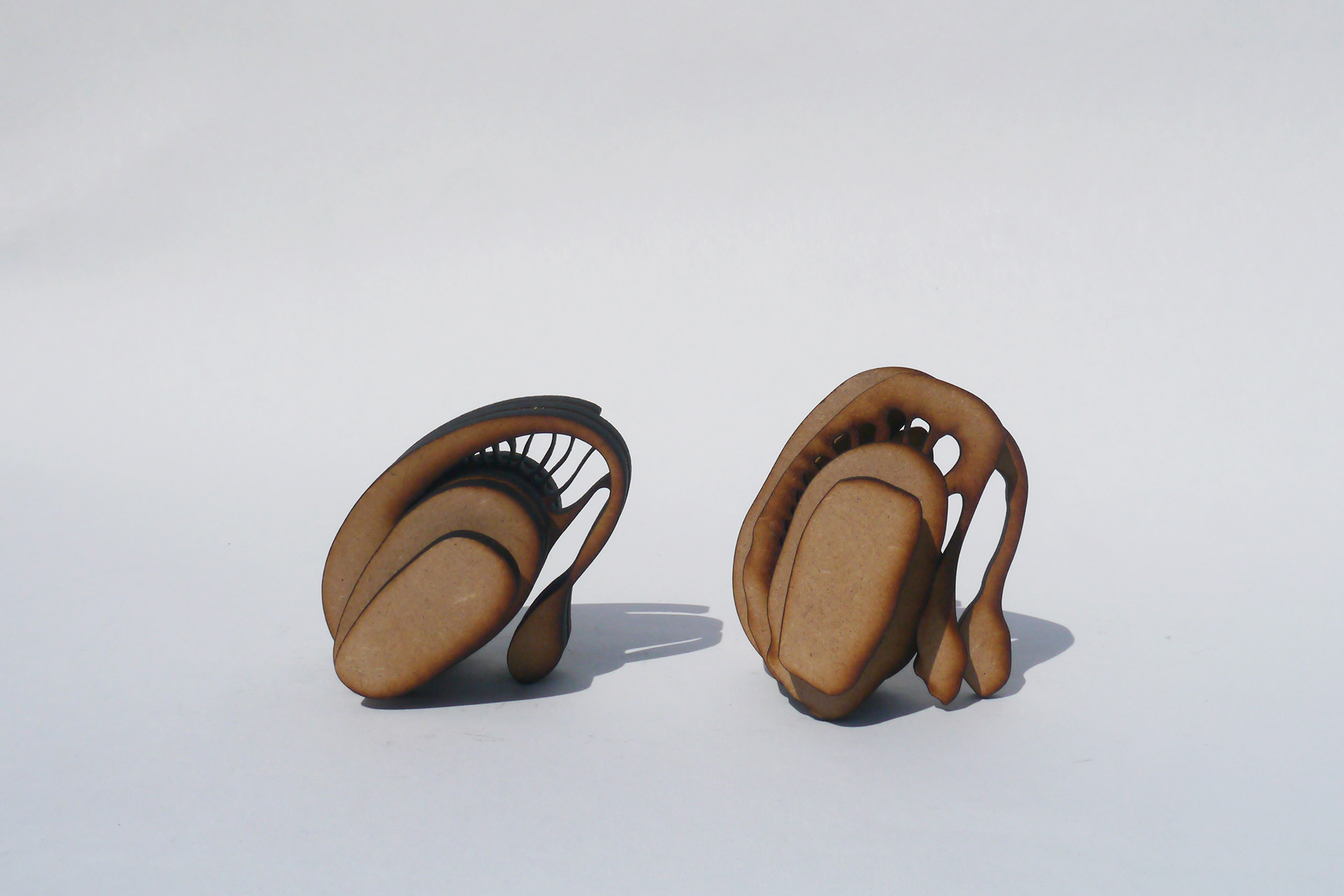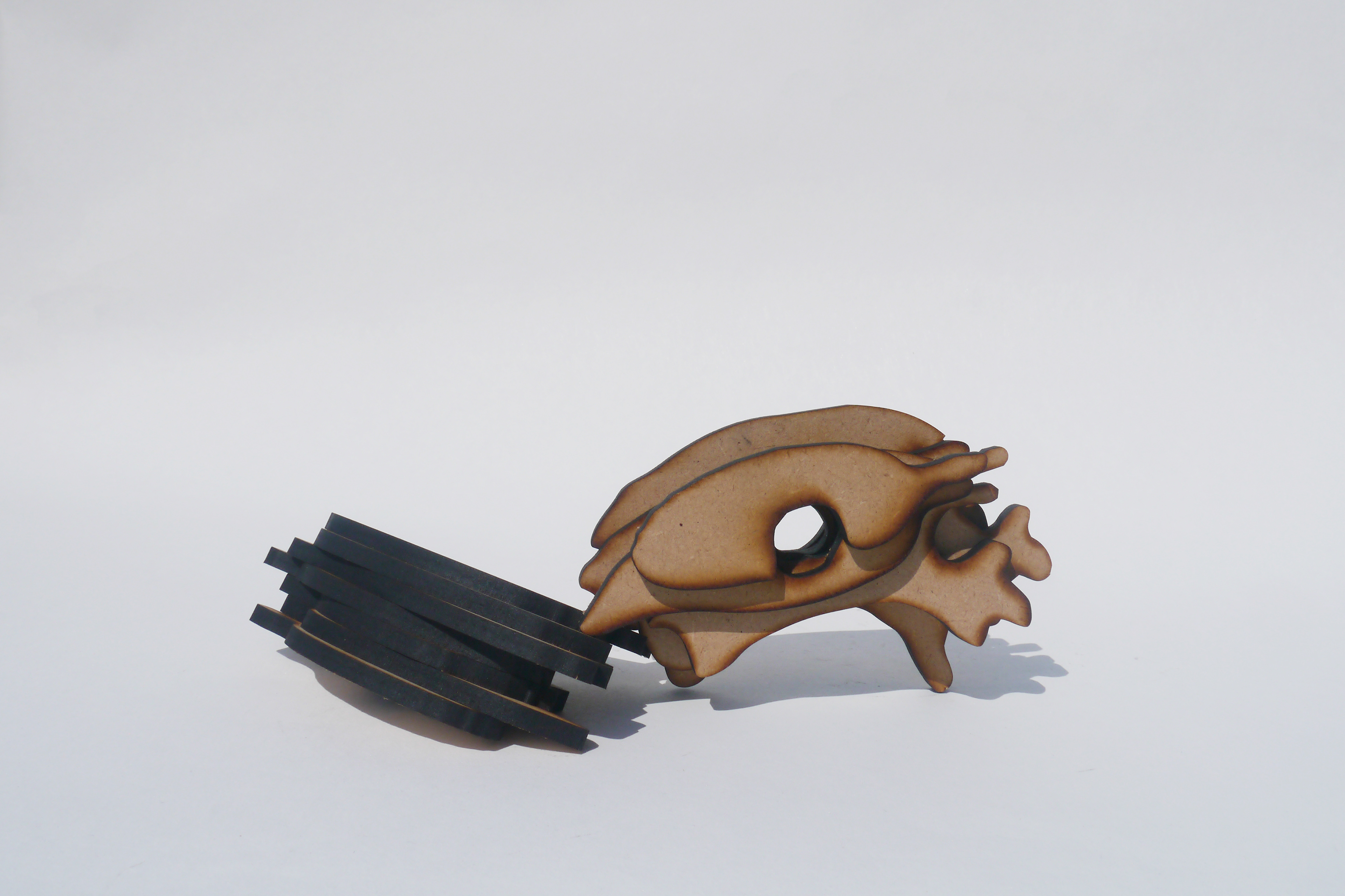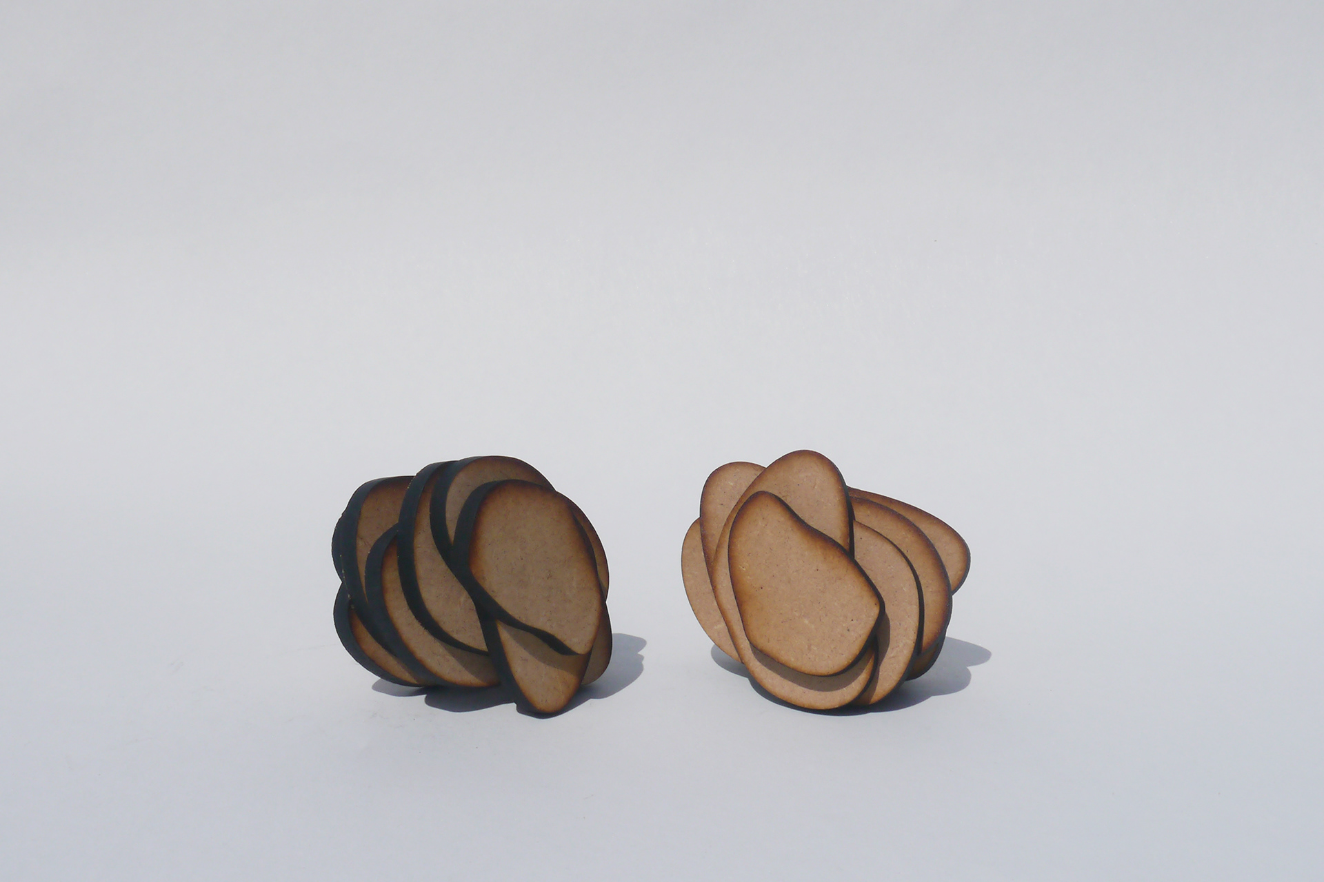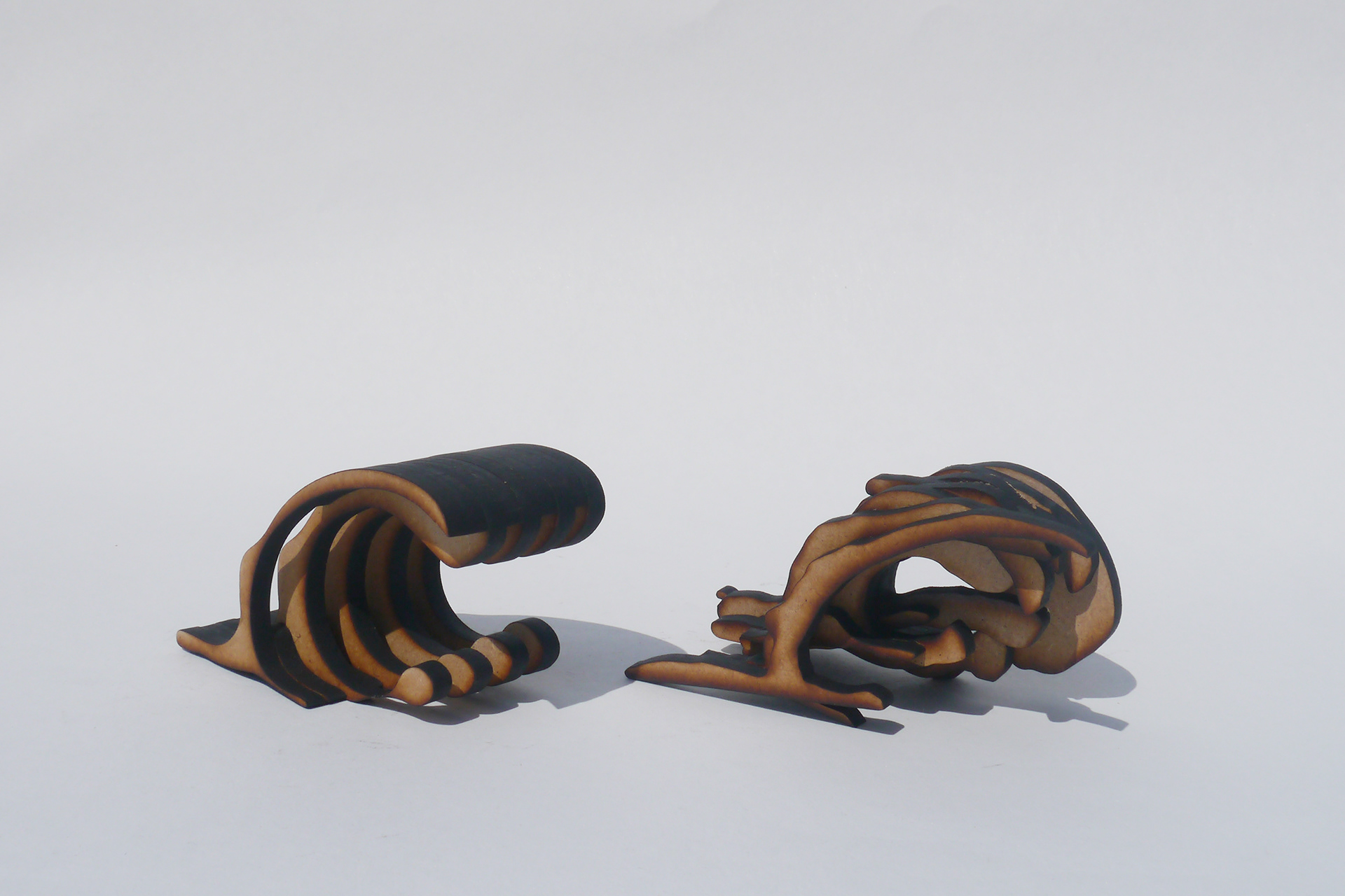 Hand crafted representations of anatomical brain structures represent the changes the brain goes through in the later stages of dementia. The pieces were co-produced with a person with dementia.